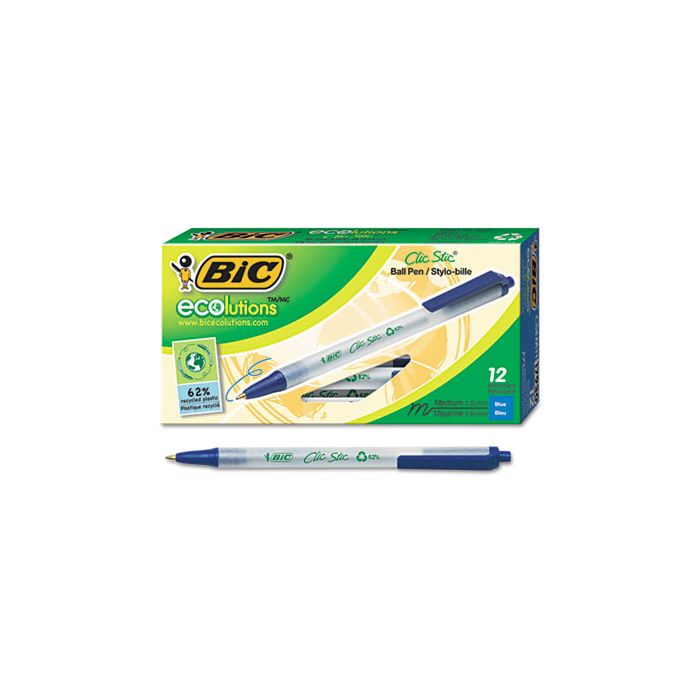The Bic® Ecolutions Clic Stic Ballpoint Pen offers reliable medium 1 mm blue ink for smooth writing. Its retractable design and clear barrel provide convenience and comfort. Ideal for everyday use in offices, schools, and homes.
