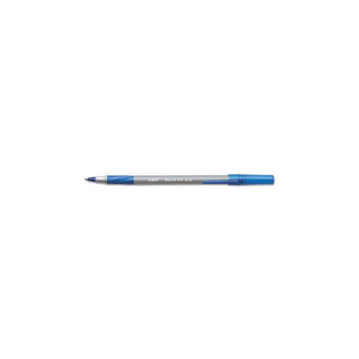 Bic® Round Stic Grip Xtra Comfort Ballpoint Pen Value Pack, Easy-Glide, Stick, Medium 1.2 mm, Blue Ink, Gray/Blue Barrel, 36/Pack