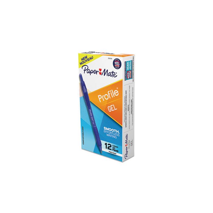 Paper mate® Profile Gel Pen, Retractable, Fine 0.5 mm, Blue Ink, Translucent Blue Barrel, Dozen