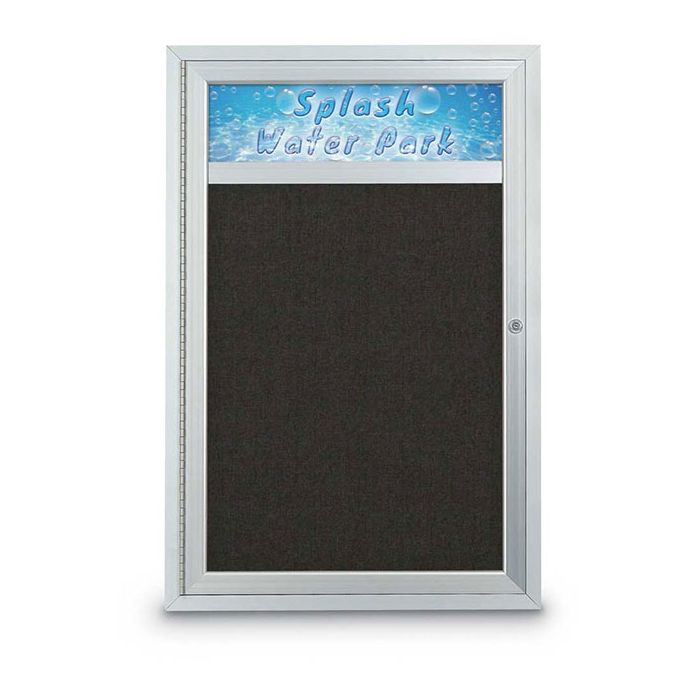 24" x 36" Single Door Traditional Outdoor with Header Corkboard with Black Fabric Backing Board, & Satin Anodized Aluminum Frame