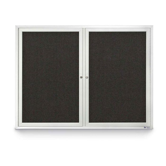 Keep important messages secure and visible with this 48" X 36" double door enclosed corkboard. Featuring a satin anodized aluminium frame and black fabric backing, it offers durability and a professional look. Ideal for busy indoor environments like offices, schools, and public spaces.