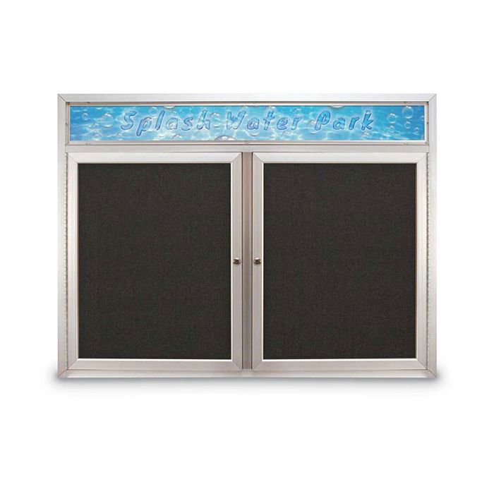 48" x 36" Double Door Traditional Outdoor with Header Corkboard with Black Fabric Backing Board, & Satin Anodized Aluminum Frame