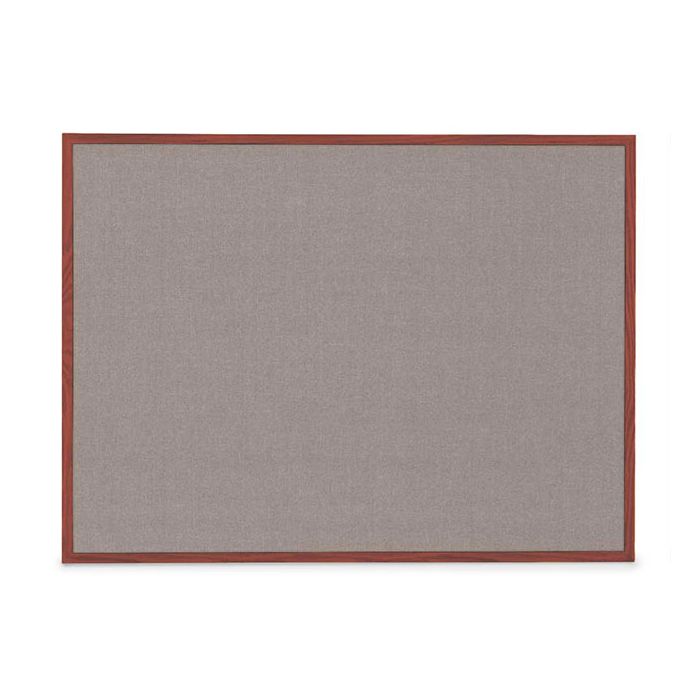This hardwood framed bulletin board displays important messages clearly and reliably. It features a durable cherry wood stain frame and pearl fabric backing for a classic look and long-lasting use. Designed for versatile mounting, it suits a range of professional and community environments.
