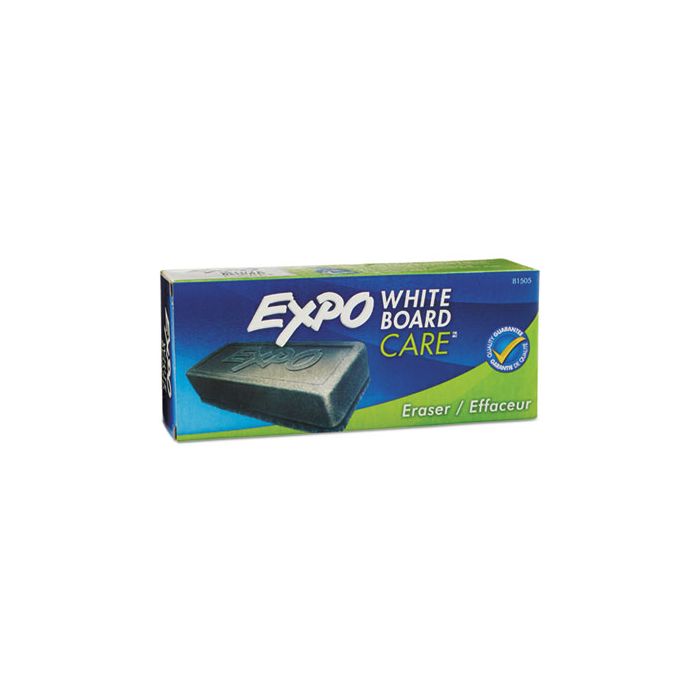 Eraser features a soft pile that removes markings quickly and cleanly from dry-erase surfaces. Use on whiteboards, porcelain, melamine and Expo surfaces. Clean eraser with soap and water.