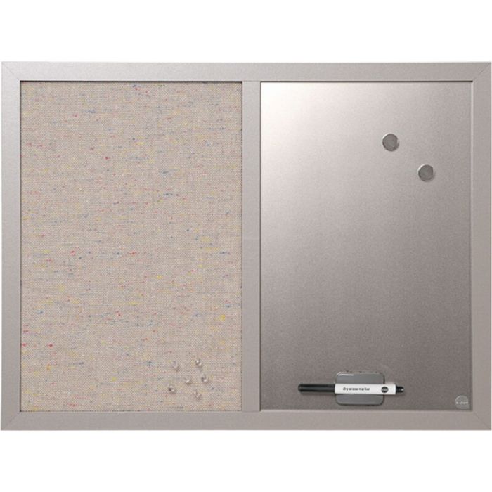 Combination board features a dual-surface design to give you the option to use either the magnetic, dry-erase surface or felt bulletin surface. Durable fabric surface never shows pinholes and is excellent for displaying a variety of items with pushpins or hook-and-loop adhesives. Dry-erase surface wipes down completely for reliable everyday use. Included mounting system allows you to easily hang this board vertically or horizontally in any optimal location.
