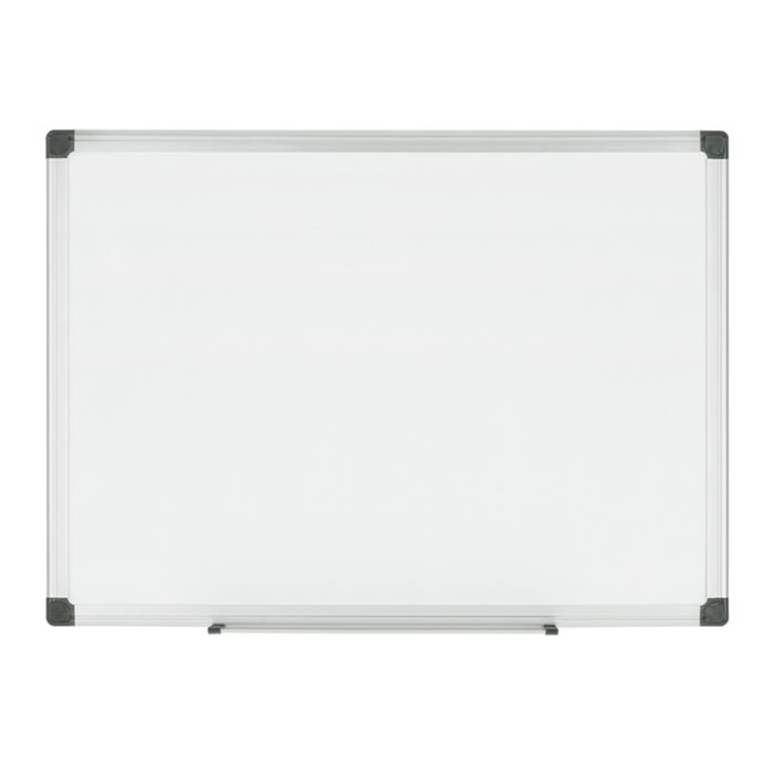 Dry-erase board features a magnetic surface for a quick, easy way to display last-minute items, papers and more. Porcelain baked enamel surface resists staining, ghosting and scratching for extensive use. Sturdy, aluminum frame with a four-corner mounting system can be mounted vertically or horizontally using the included mounting hardware. Full-length tray ensures your writing utensils are always within reach.