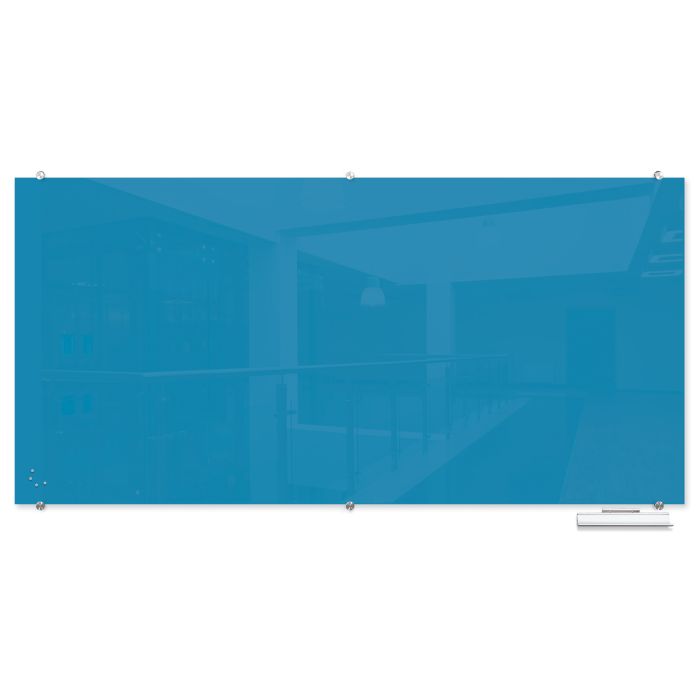 Visionary Hierarchy Magnetic Glass Dry Erase Board – Blue 48" x 96"