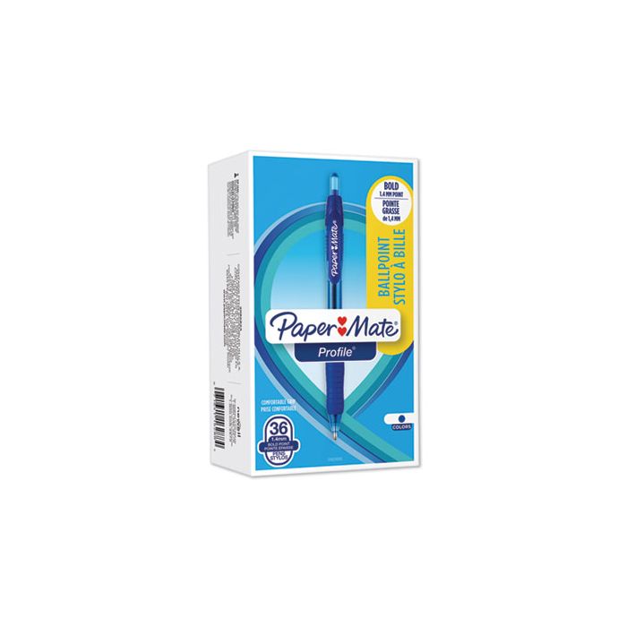 Paper mate® Profile Ballpoint Pen, Retractable, Bold 1.4 mm, Blue Ink, Blue Barrel, 36/Pack