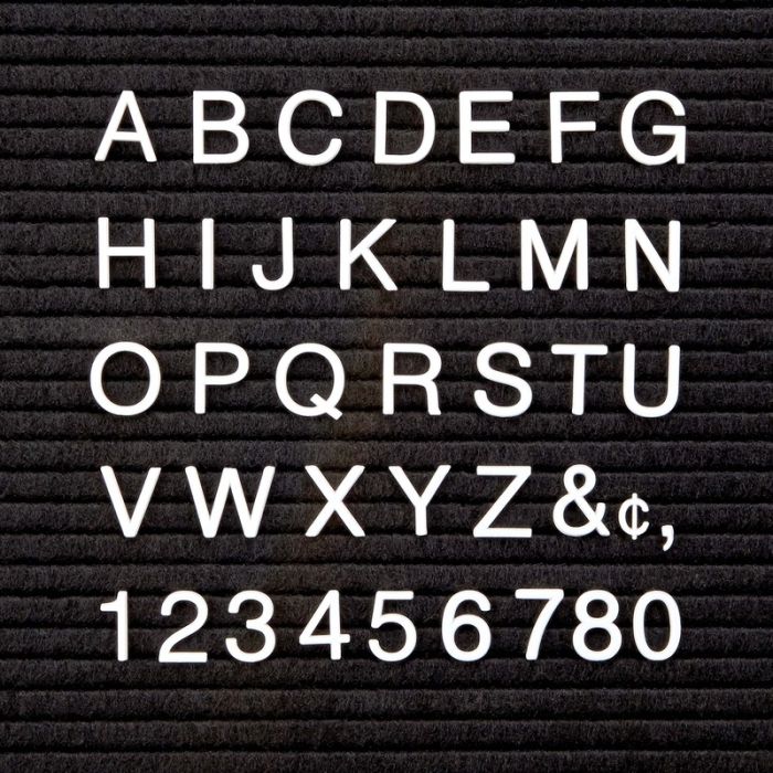 Easily create clear messages on felt letter boards with this set of 300 white characters. The pin-up design and Helvetica font ensure simple mounting and legible display. Ideal for offices, schools, and retail environments.